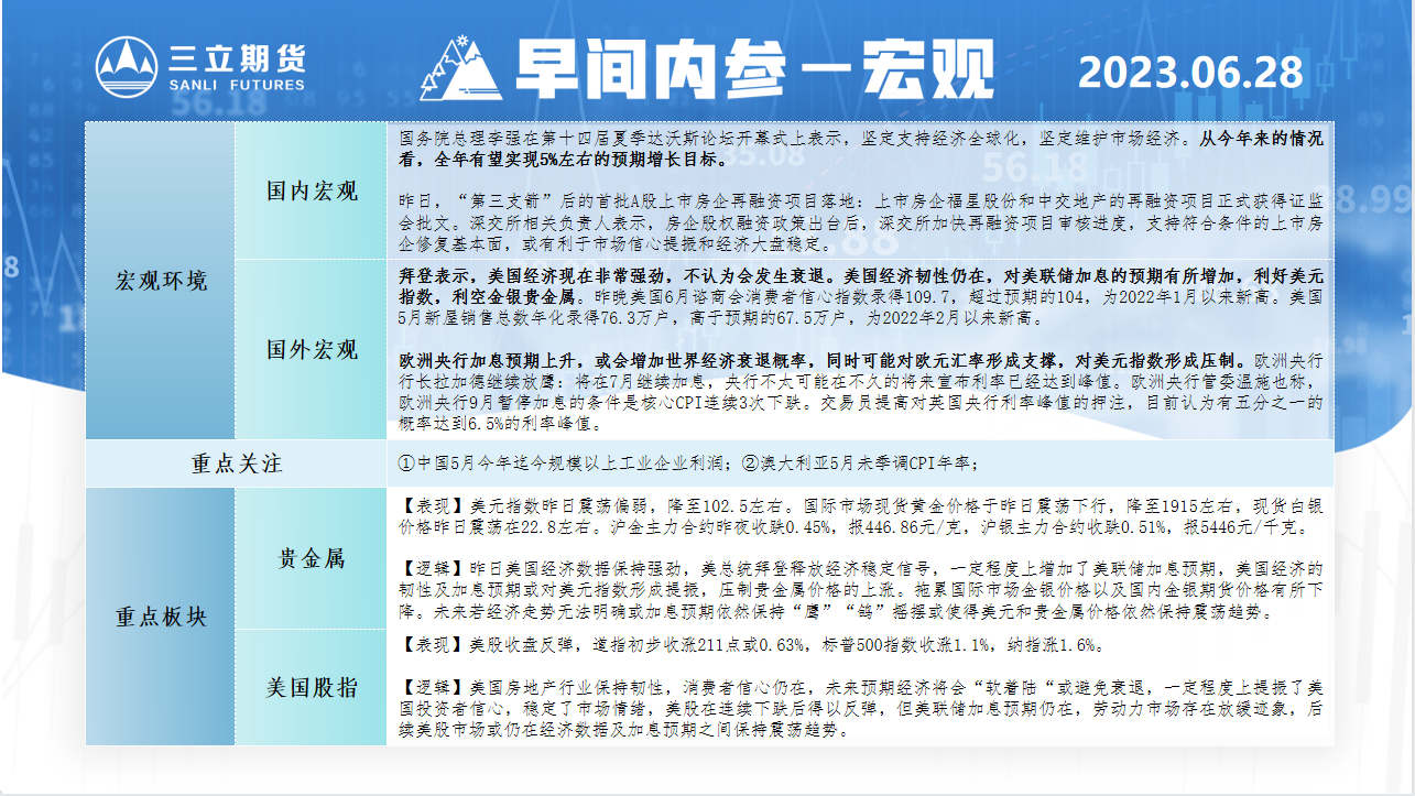 三立期货6月28日早间内参——宏观