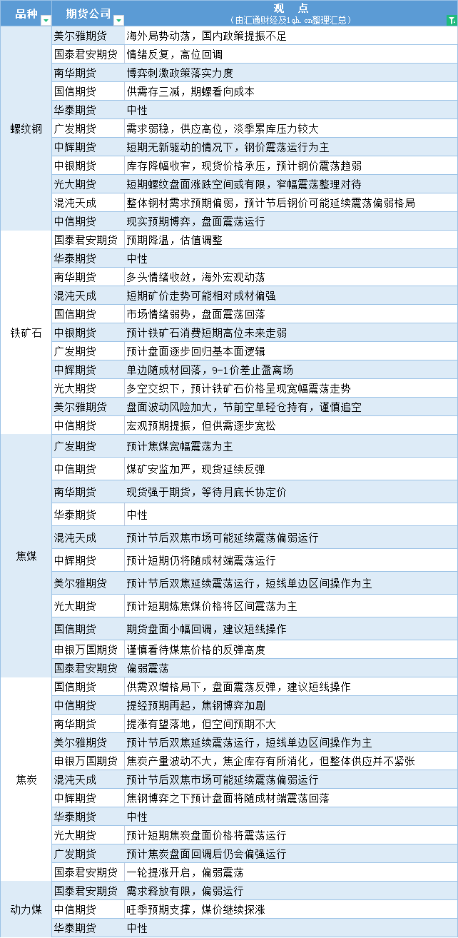 期货公司观点汇总一张图:6月26日黑色系(螺纹钢、焦煤、焦炭、铁矿石、动力煤等)