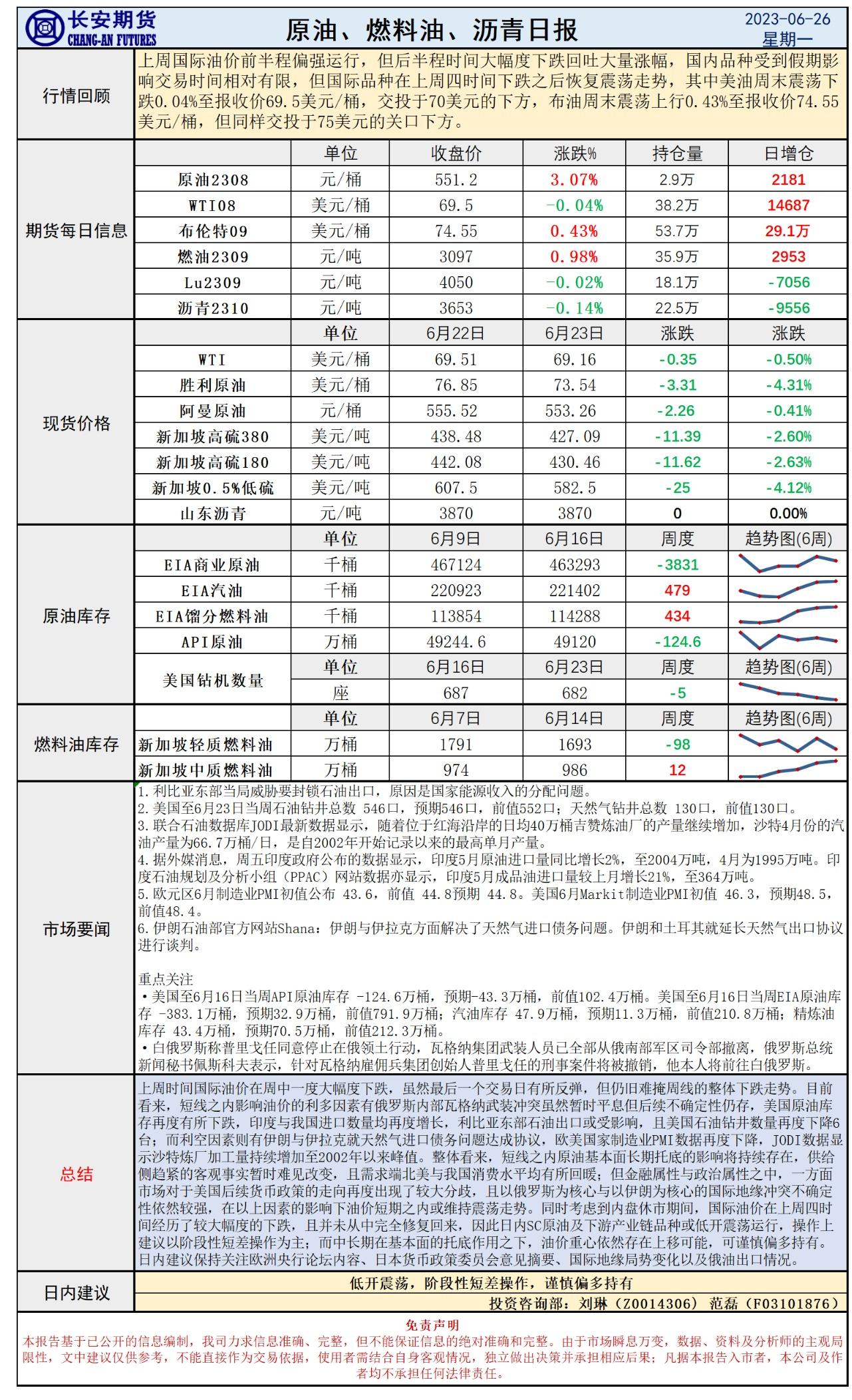 【东海期货6月26日产业链日报】能化篇:经济衰退担忧持续,油价总体弱势