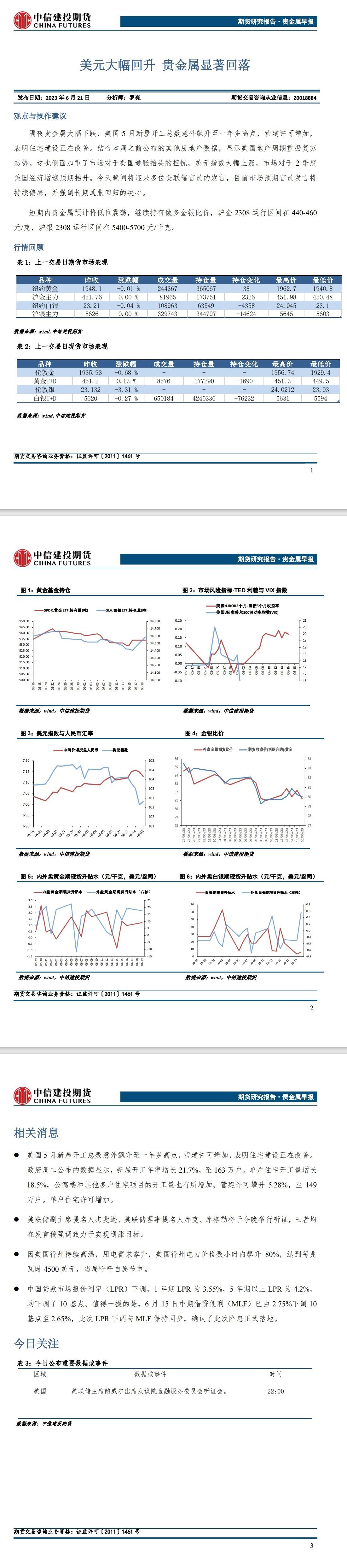 中信建投期货6月21日贵金属日报:美元大幅回升 贵金属显著回落