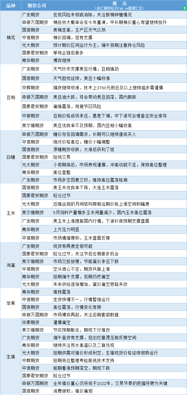 期货公司观点汇总一张图:6月21日农产品(棉花、豆粕、白糖、玉米、鸡蛋、生猪等)