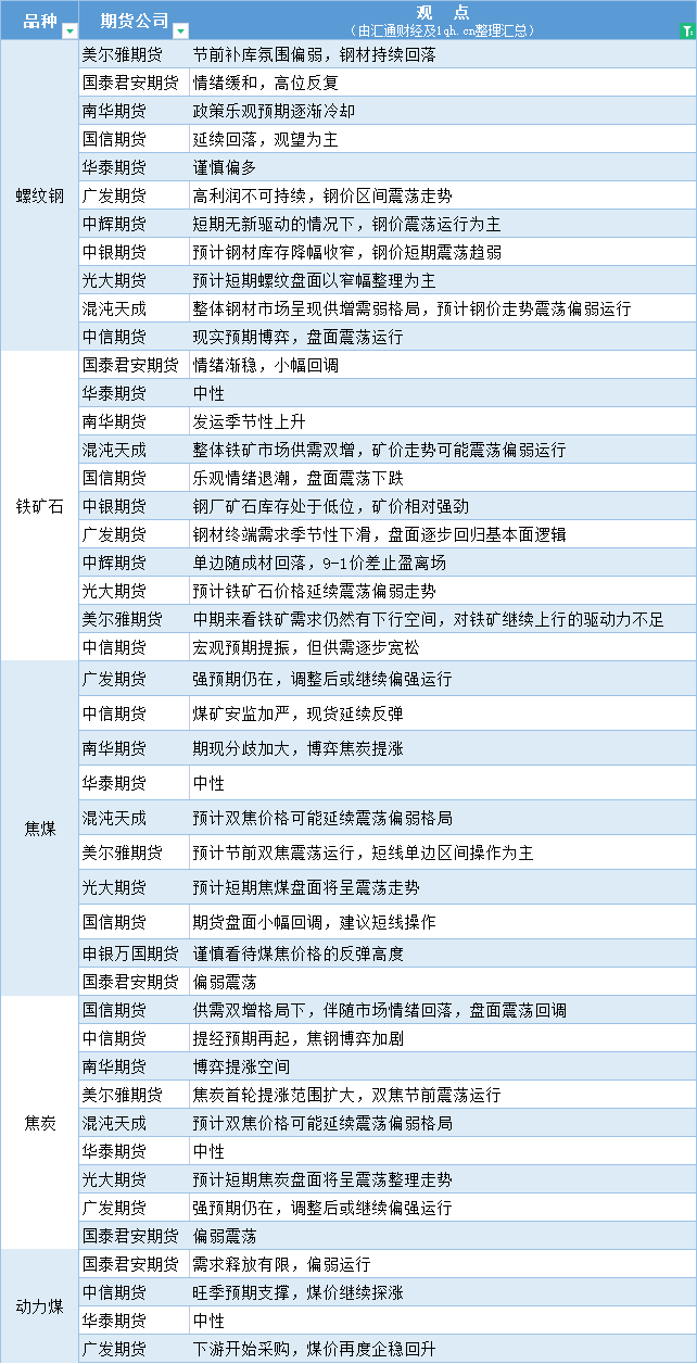 期货公司观点汇总一张图:6月21日黑色系(螺纹钢、焦煤、焦炭、铁矿石、动力煤等)