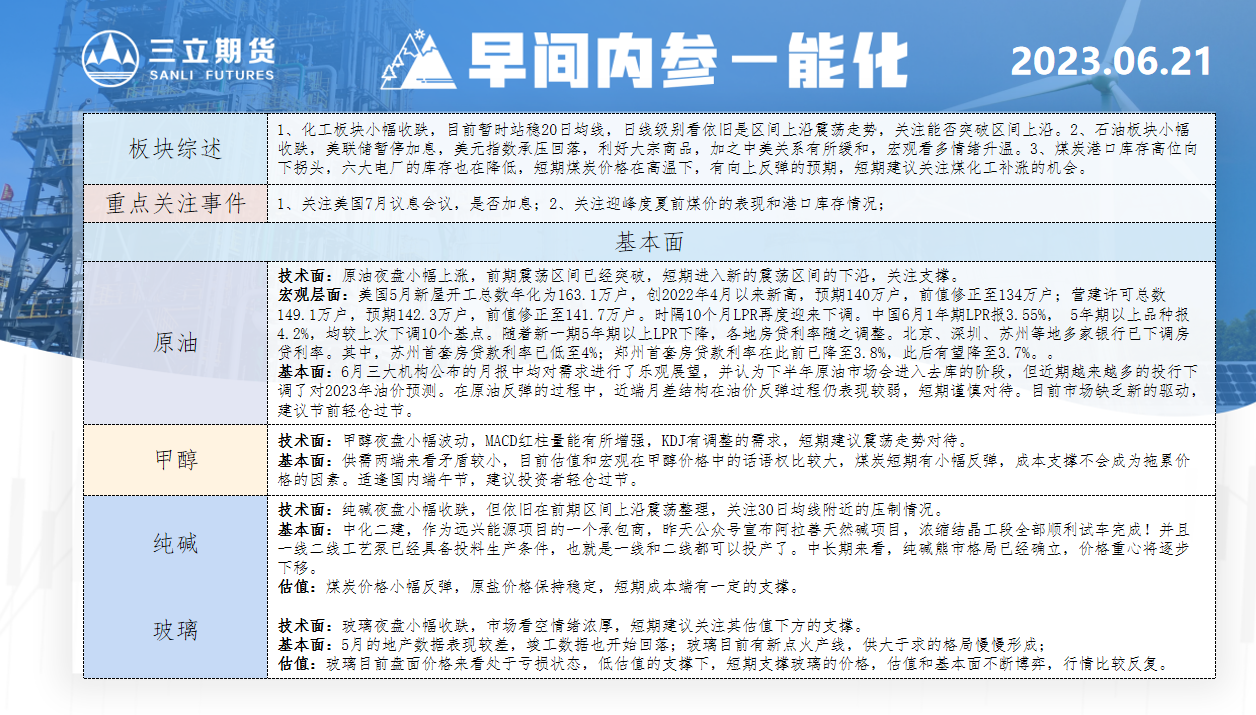 三立期货6月21日早间内参——能化