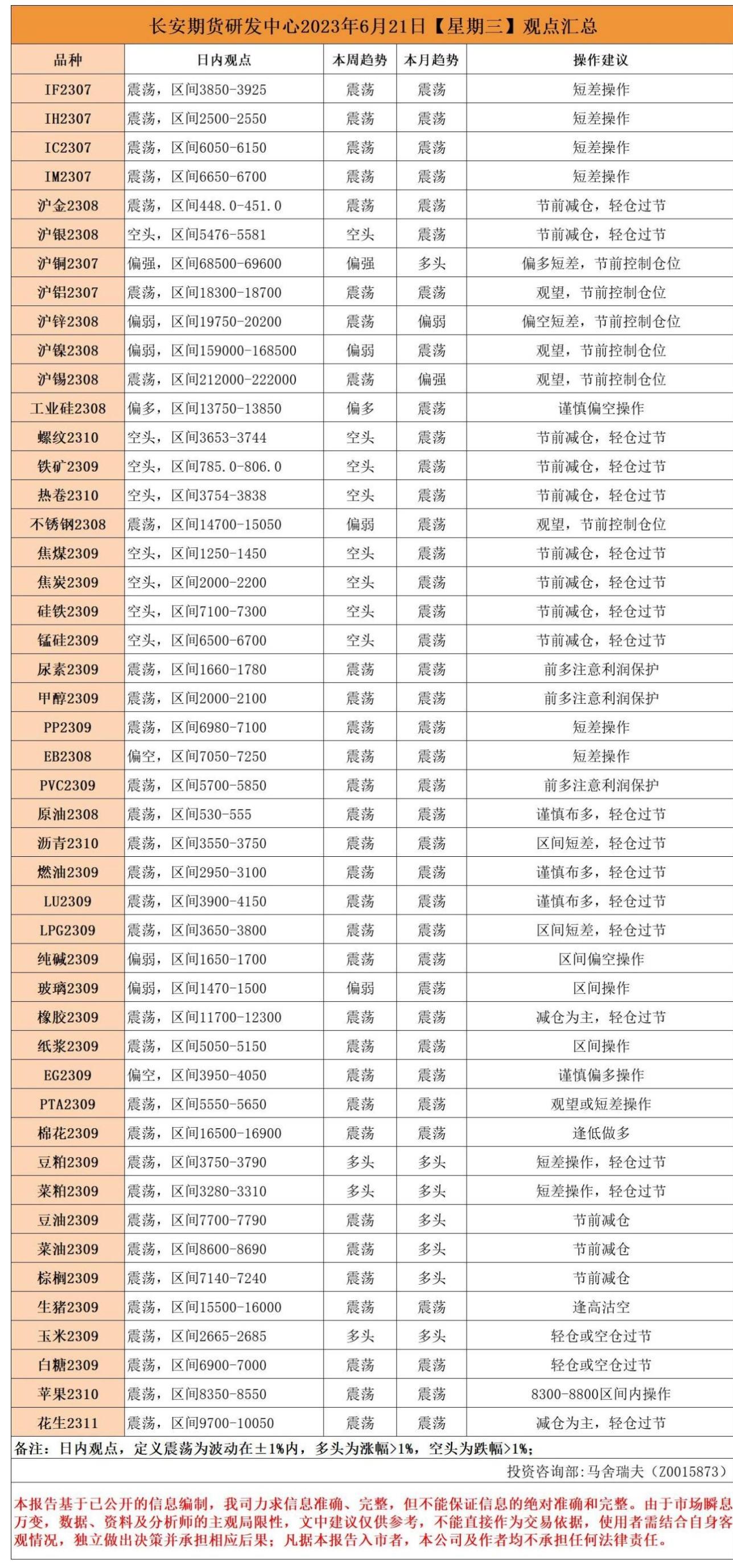 长安期货6月21日早间看盘