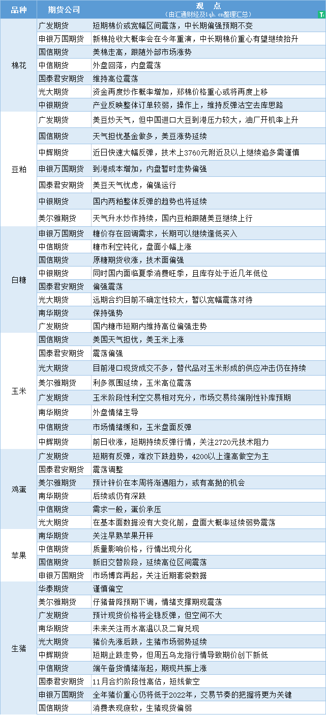 期货公司观点汇总一张图:6月19日农产品(棉花、豆粕、白糖、玉米、鸡蛋、生猪等)