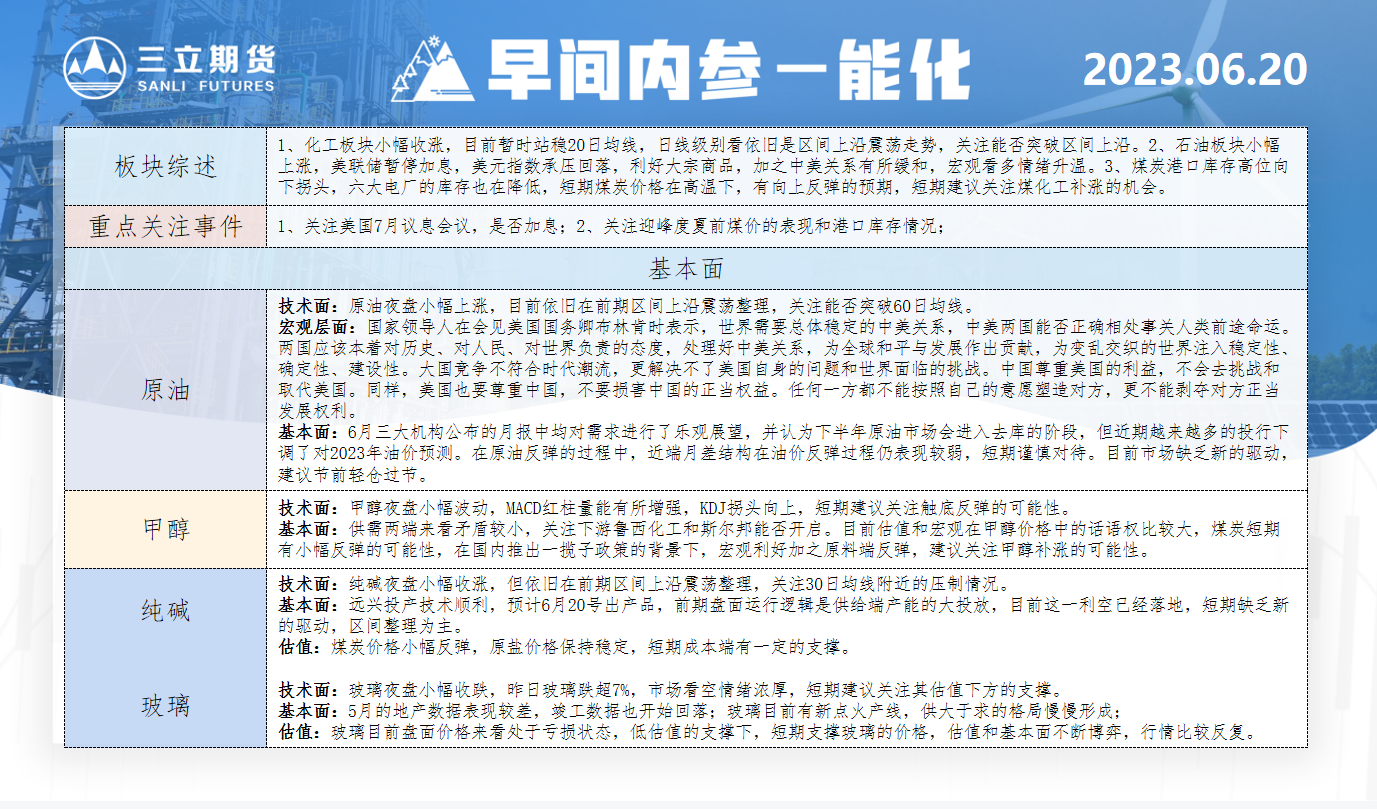 三立期货6月20日早间内参——能化