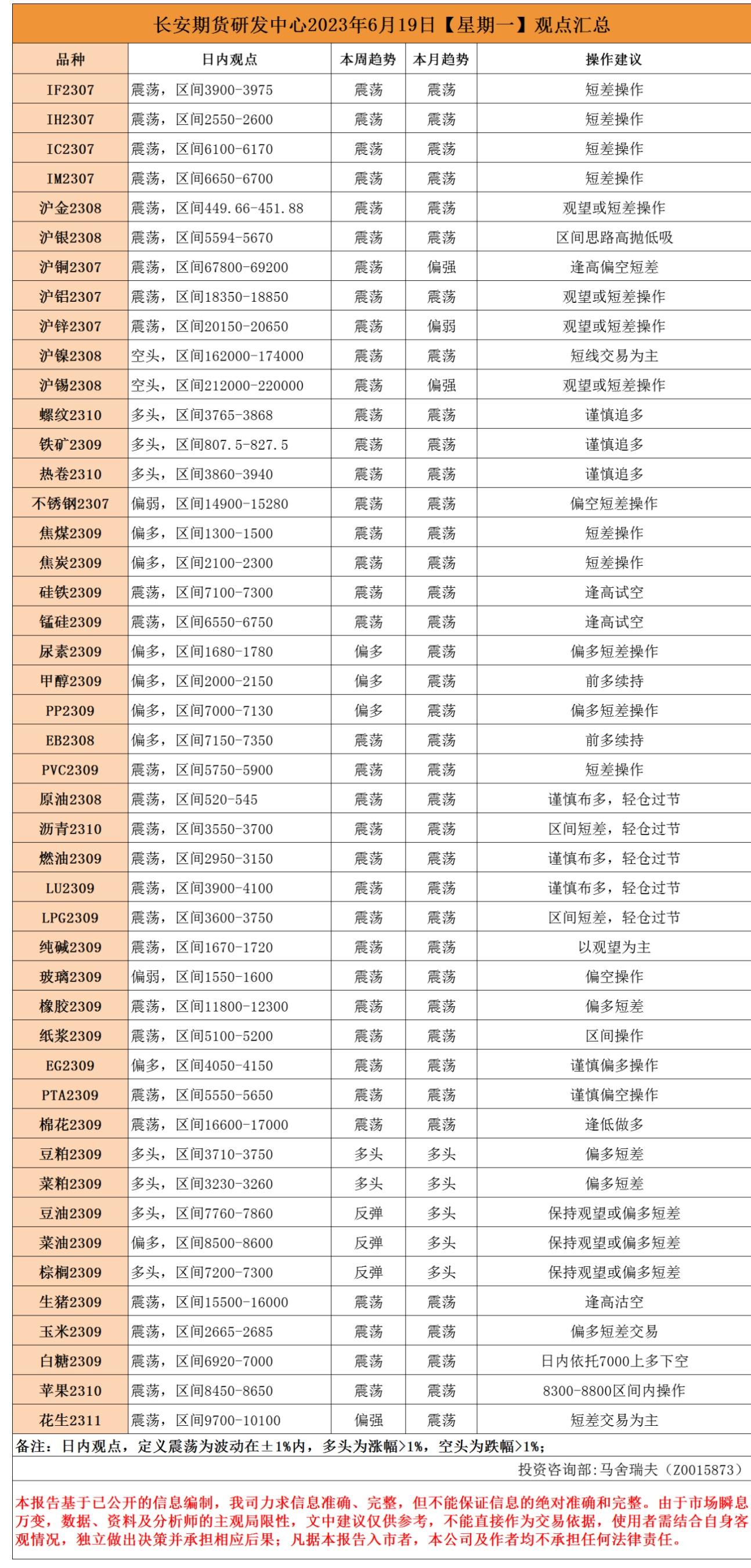 长安期货6月19日早间看盘