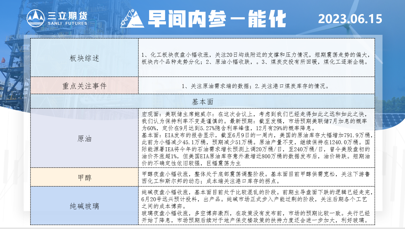 三立期货6月15日早间内参——能化