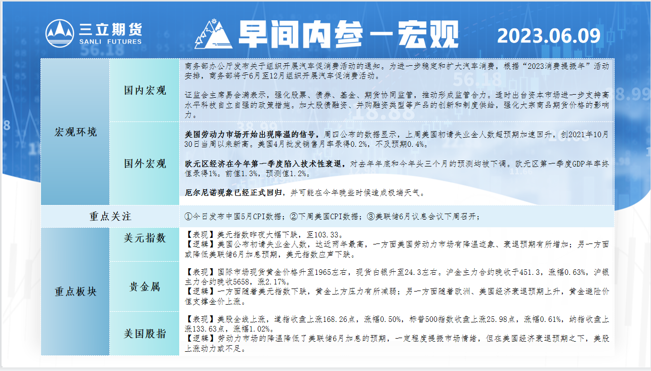 6月9日财经早餐:美国初请失业金人数增幅超预期,金价攀升,市场聚焦美联储决议