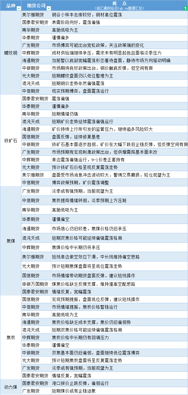 期货公司观点汇总一张图:6月8日黑色系(螺纹钢、焦煤、焦炭、铁矿石、动力煤等)