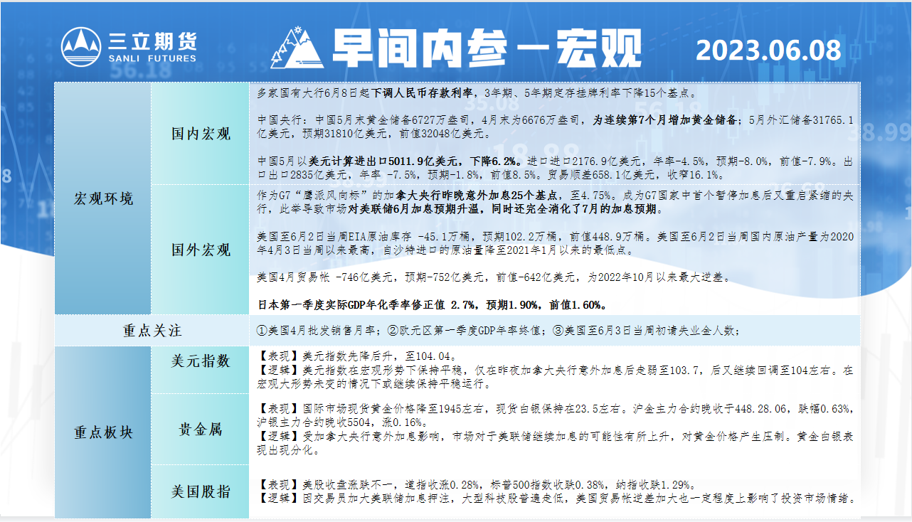 6月8日财经早餐:黄金因美债收益率走高而下滑,静待美联储决议上场