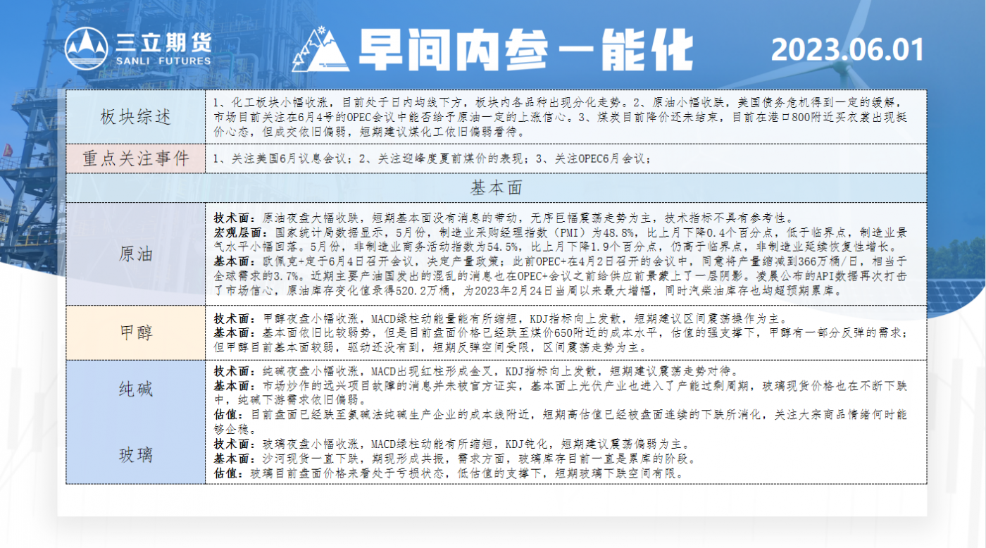 三立期货6月1日早间内参——能化