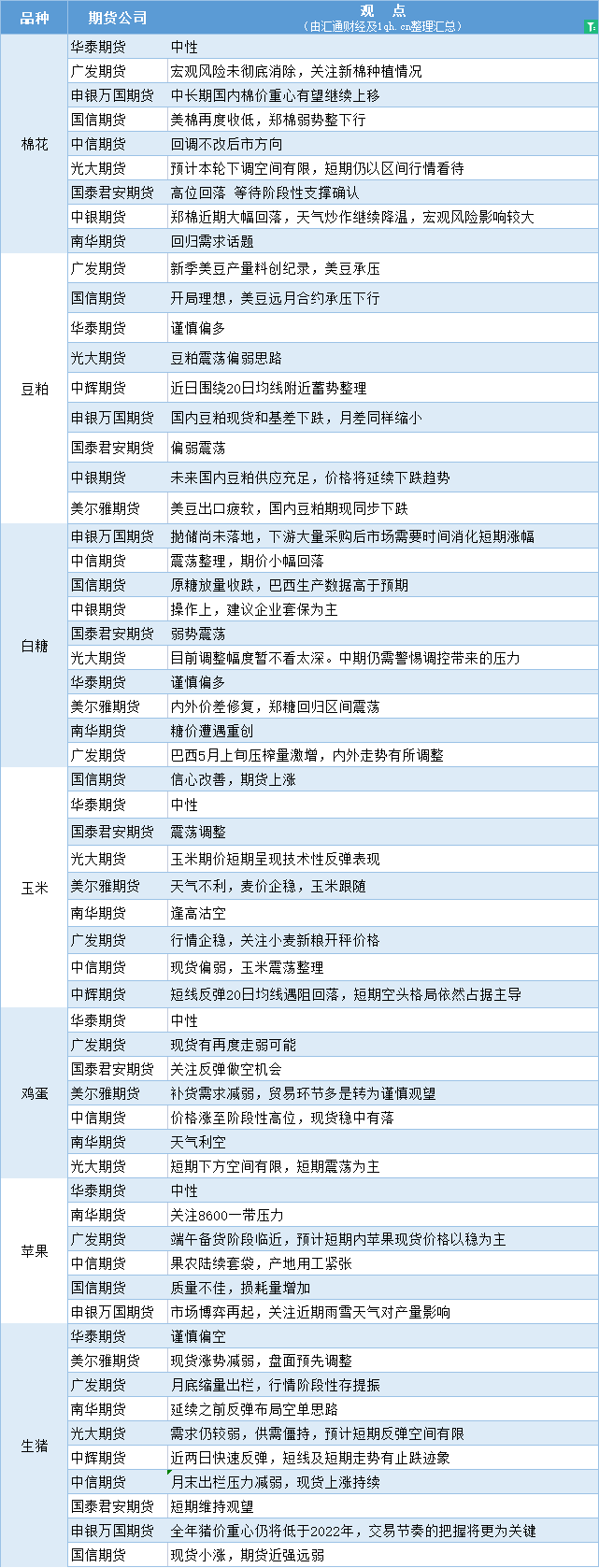 期货公司观点汇总一张图:5月26日农产品(棉花、豆粕、白糖、玉米、鸡蛋、生猪等)