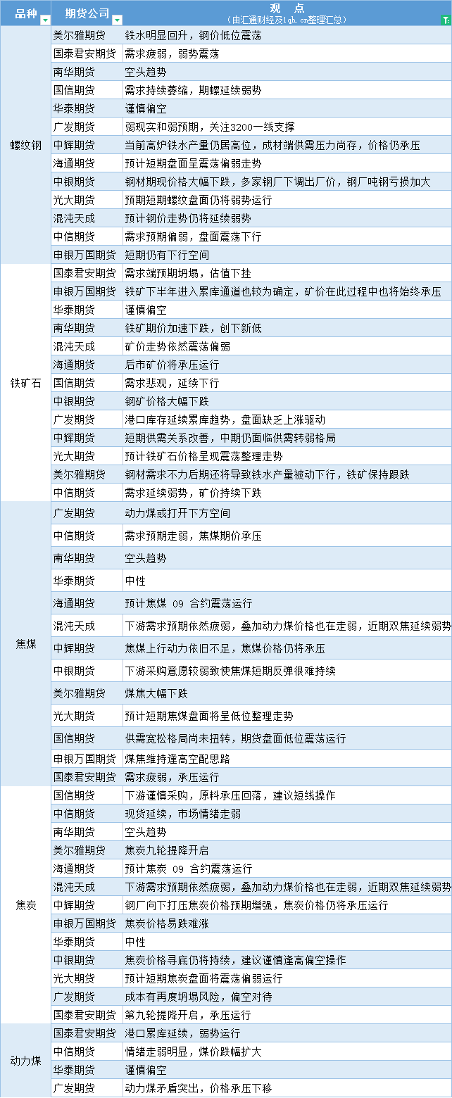 期货公司观点汇总一张图:5月26日黑色系(螺纹钢、焦煤、焦炭、铁矿石、动力煤等)
