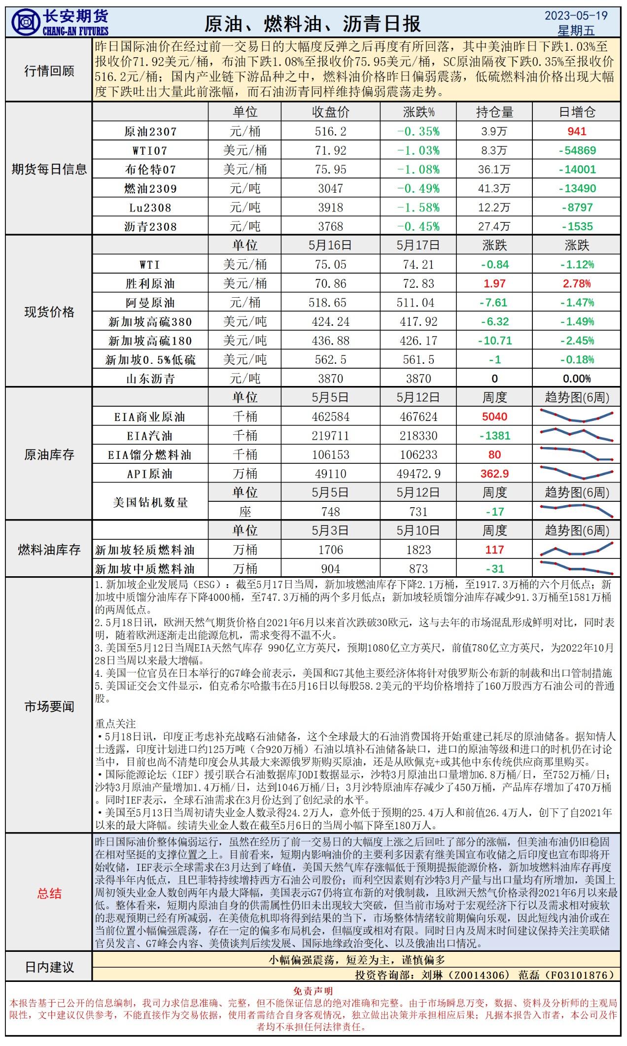 【东海期货5月19日产业链日报】能化篇:加息概率再起,油价跟随回调