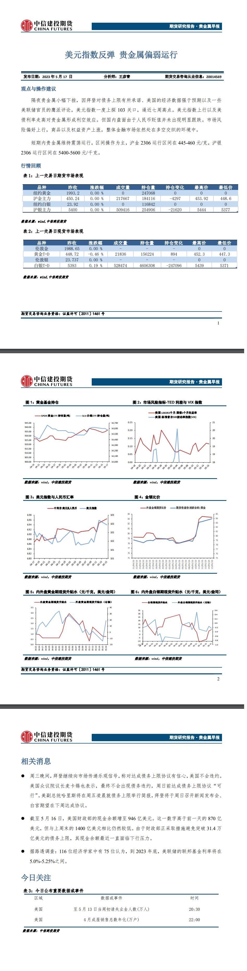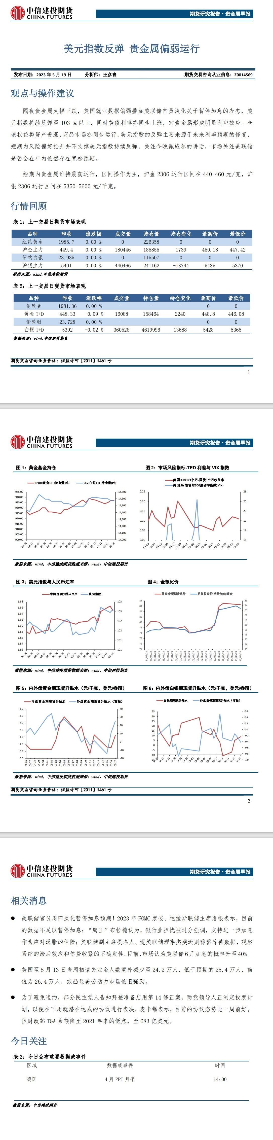 中信建投期货5月18日贵金属日报:美元指数反弹,贵金属偏弱运行