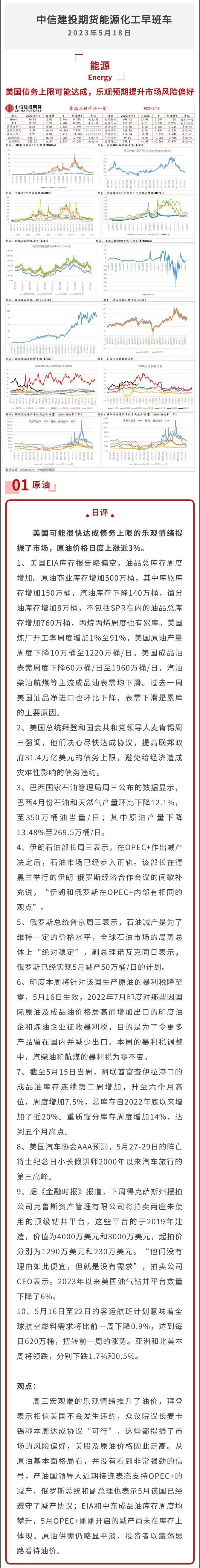 中信建投期货5月18日能源日报:美国债务上限可能达成,乐观预期提升市场风险偏好