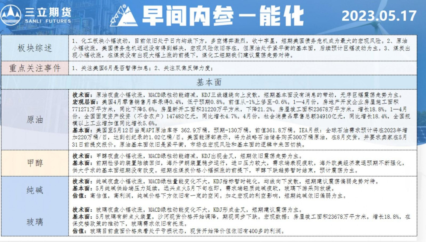 三立期货5月17日早间内参——能化