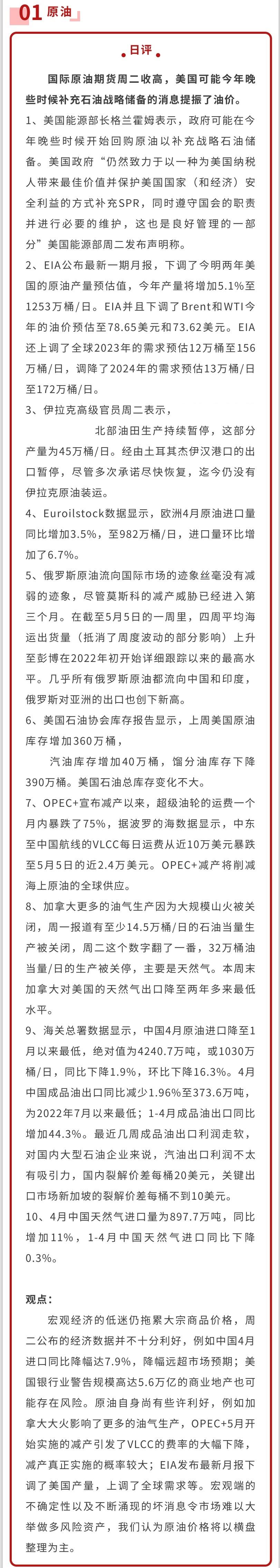 中信建投期货5月10日能源早评