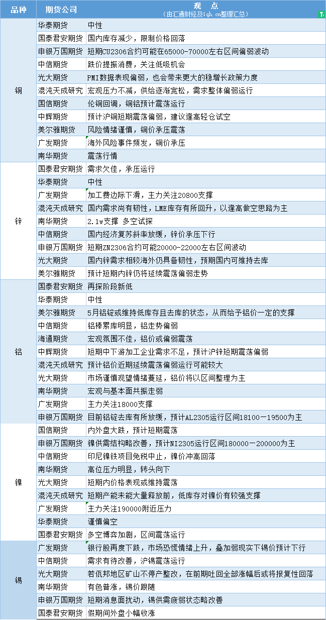 期货公司观点汇总一张图:5月5日有色系(铜、锌、铝、镍、锡等)