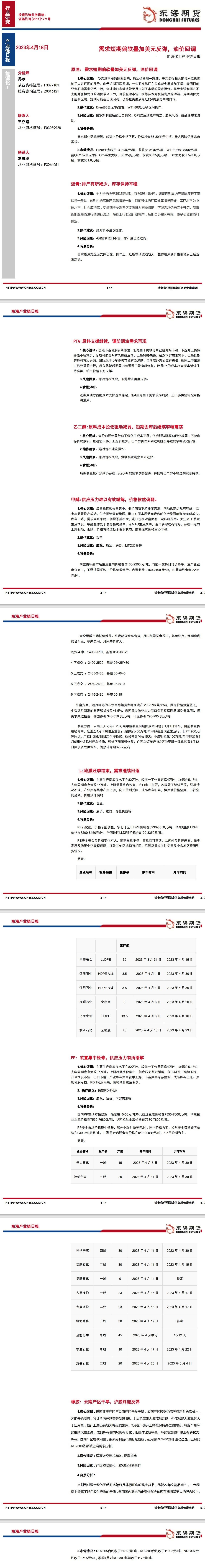 【东海期货4月18日产业链日报】能化篇:需求短期偏软叠加美元反弹,油价周一回调