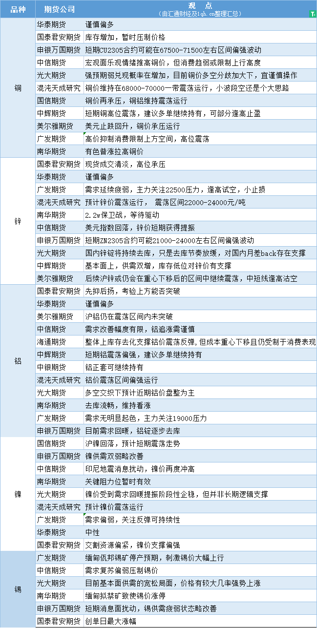 期货公司观点汇总一张图:4月18日有色系(铜、锌、铝、镍、锡等)