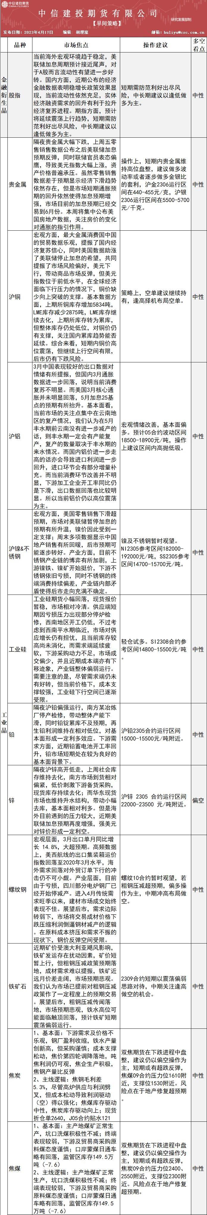 中信建投期货4月17日早间交易策略