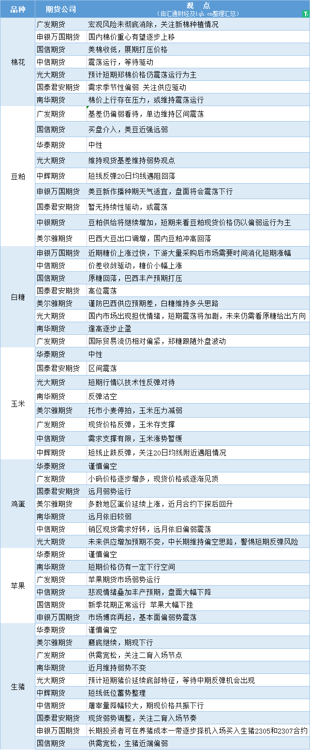 期货公司观点汇总一张图:4月13日农产品(棉花、豆粕、白糖、玉米、鸡蛋、生猪等)