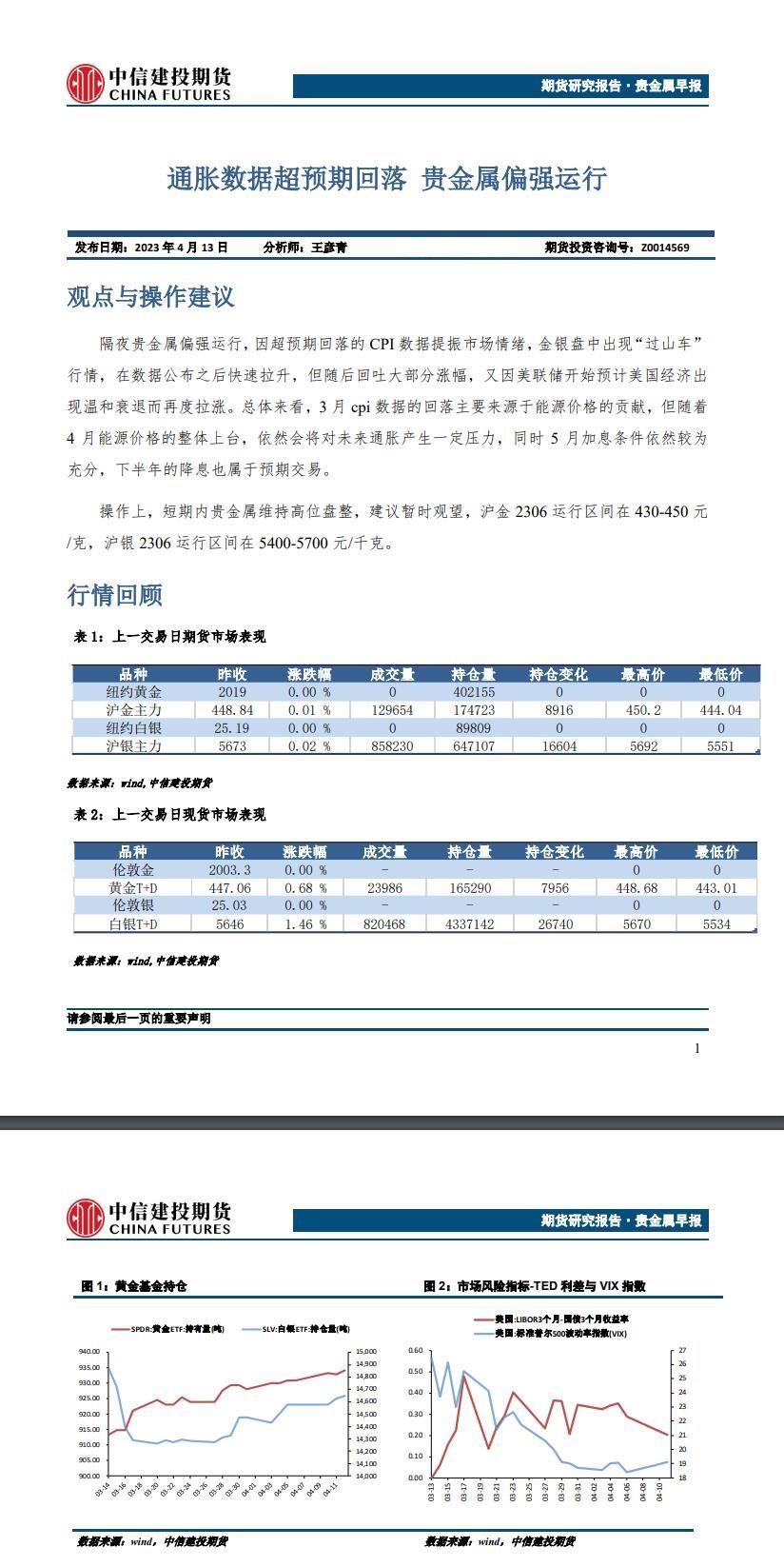 中信建投期货4月13日贵金属报告:通胀数据超预期回落 贵金属偏强运行