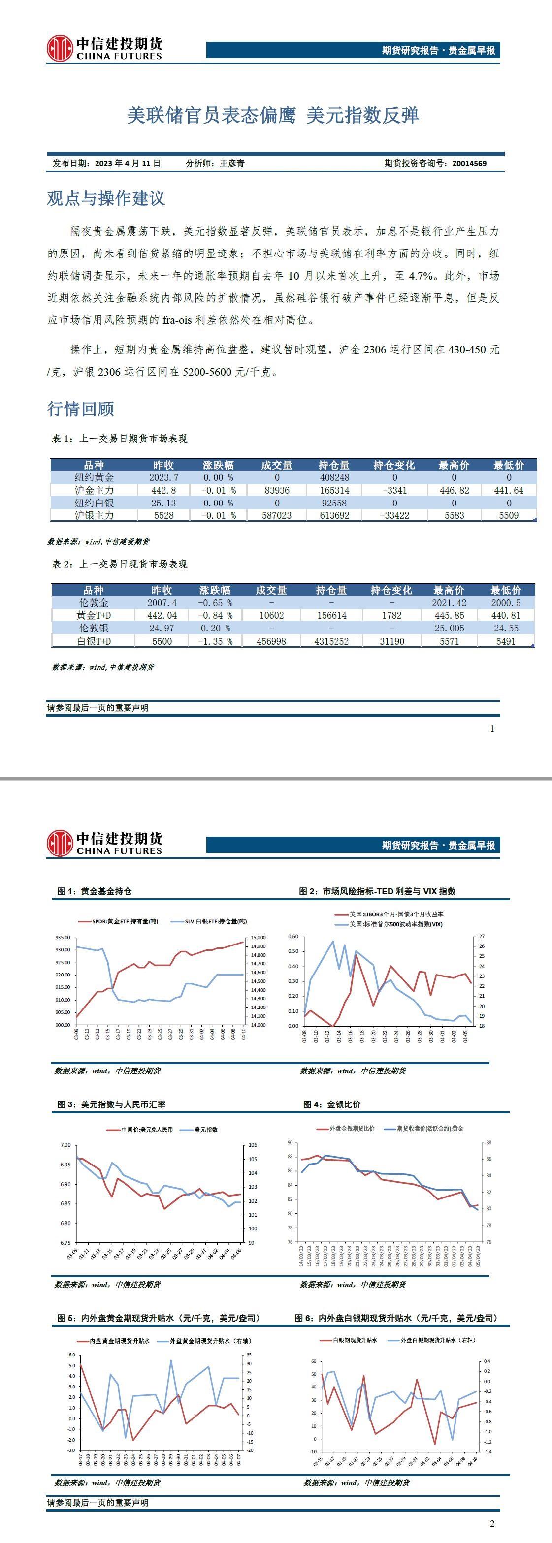 中信建投期货4月11日贵金属报告:美联储官员表态偏鹰 美元指数周一反弹