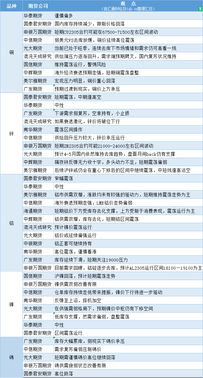 期货公司观点汇总一张图:4月11日有色系(铜、锌、铝、镍、锡等)