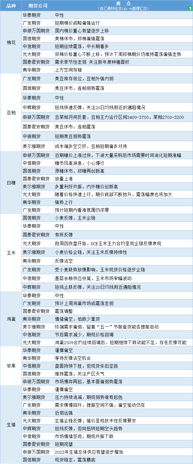 期货公司观点汇总一张图:4月10日农产品(棉花、豆粕、白糖、玉米、鸡蛋、生猪等)