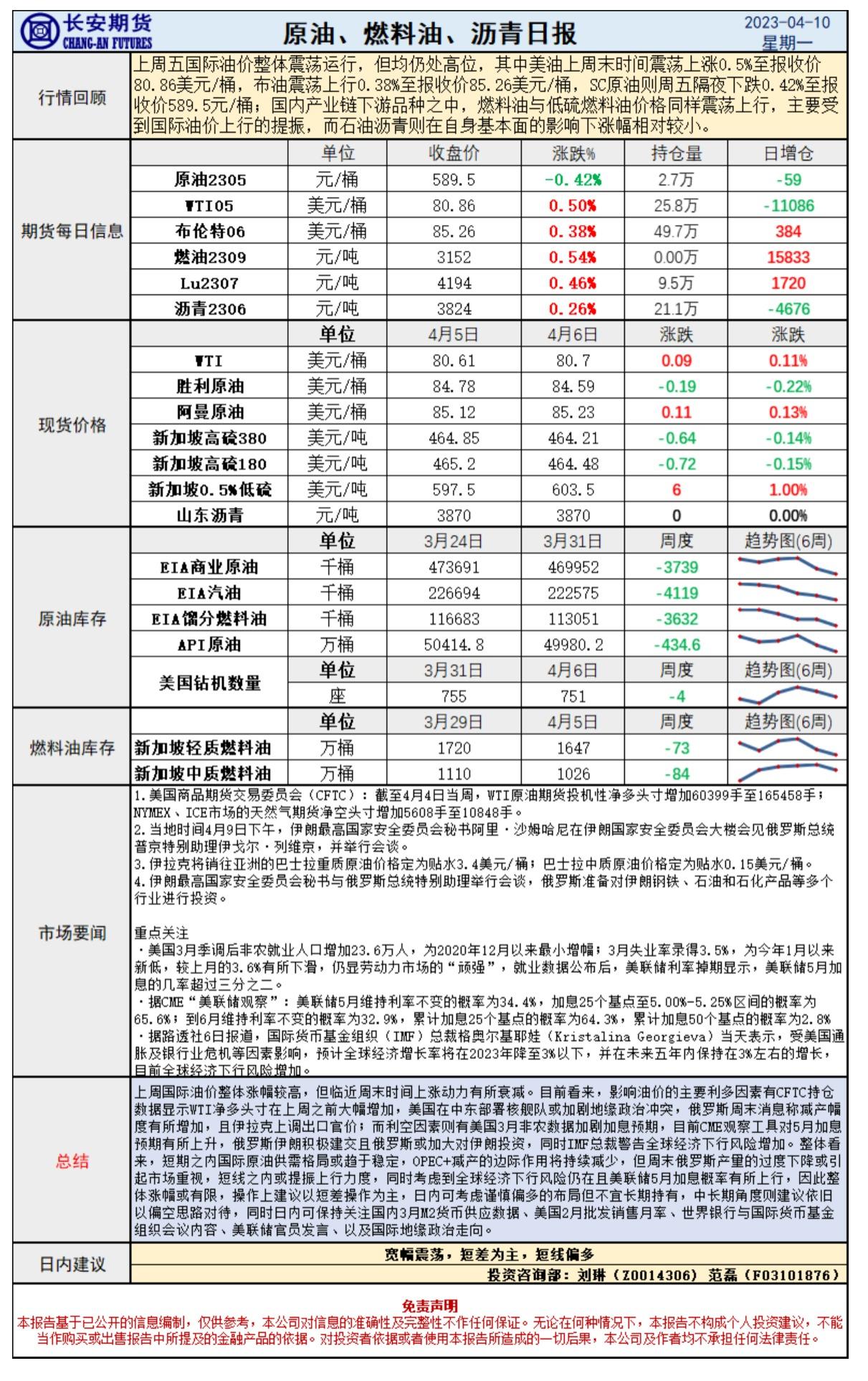 长安期货4月10日原油报告:非农加剧加息预期,俄油过量减产或存短暂偏多机会