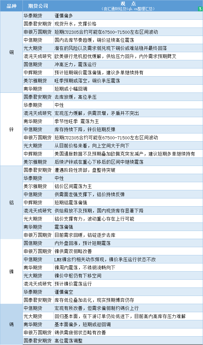 期货公司观点汇总一张图:4月3日有色系(铜、锌、铝、镍、锡等)
