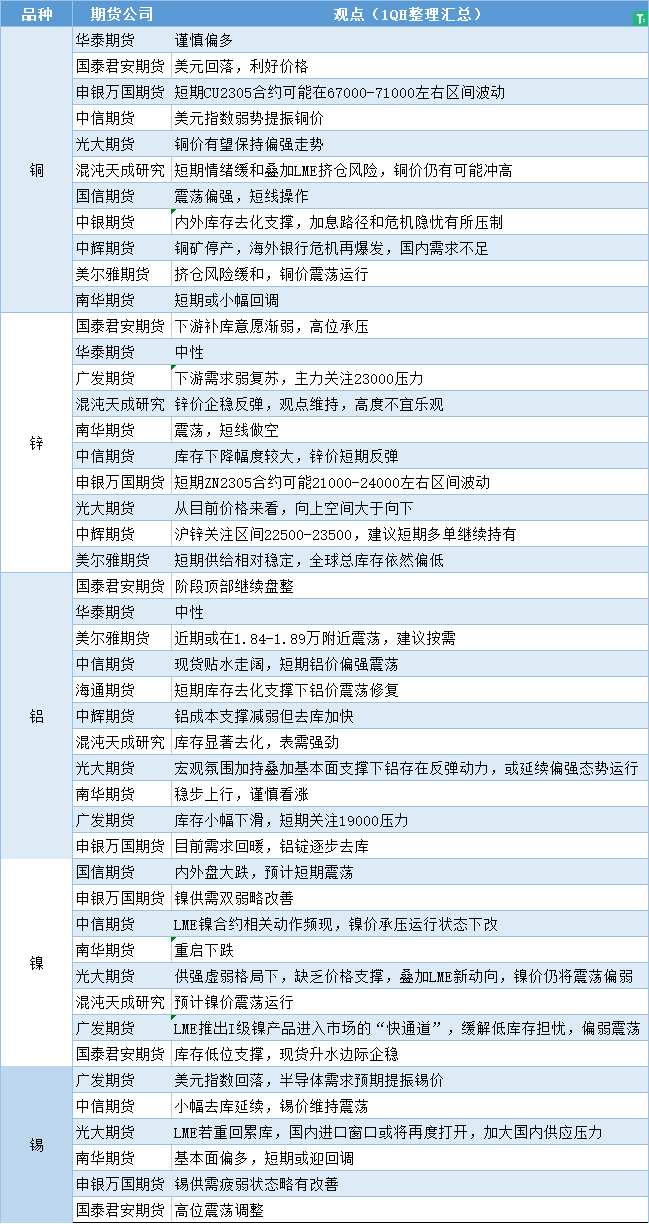 期货公司观点汇总一张图:3月31日有色系(铜、锌、铝、镍、锡等)