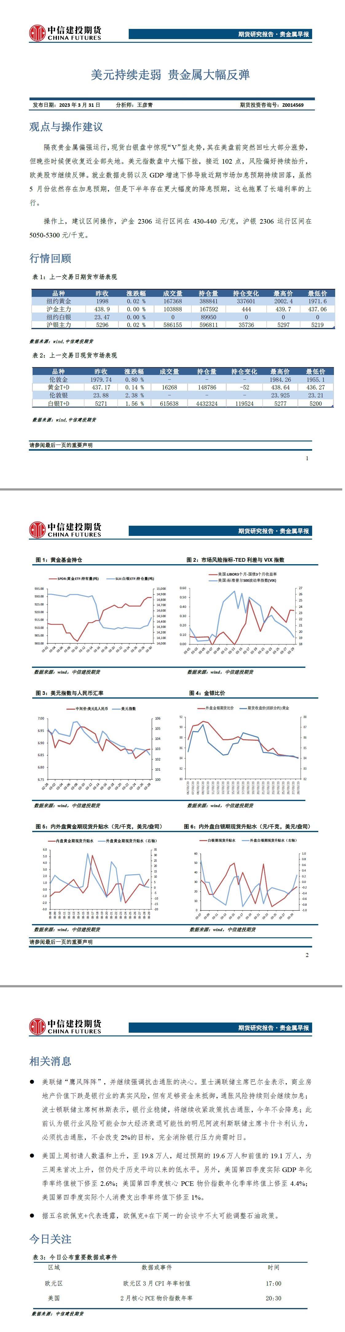 中信建投期货3月31日贵金属报告