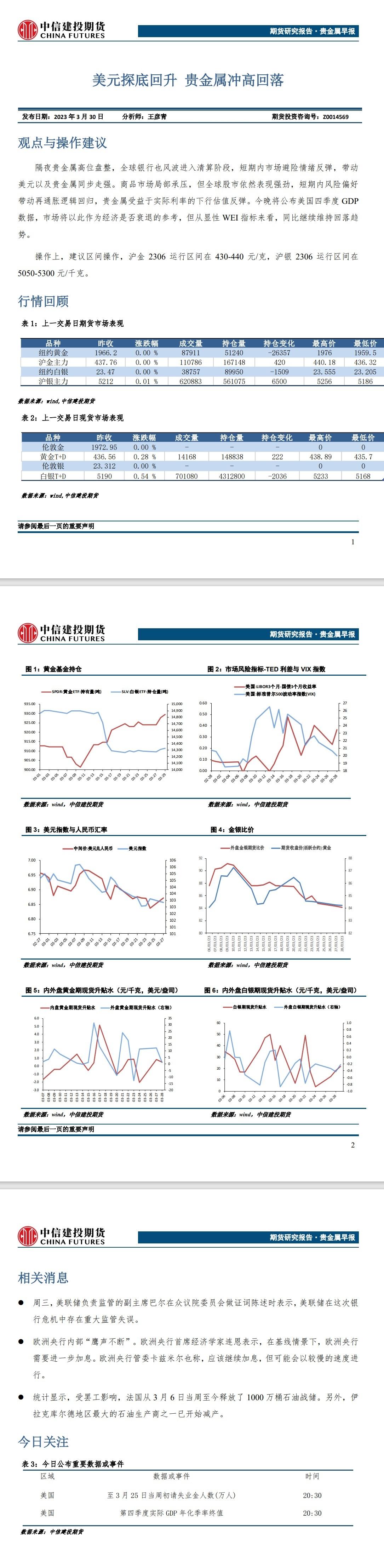 中信建投期货3月30日贵金属报告:美元探底回升 贵金属冲高回落