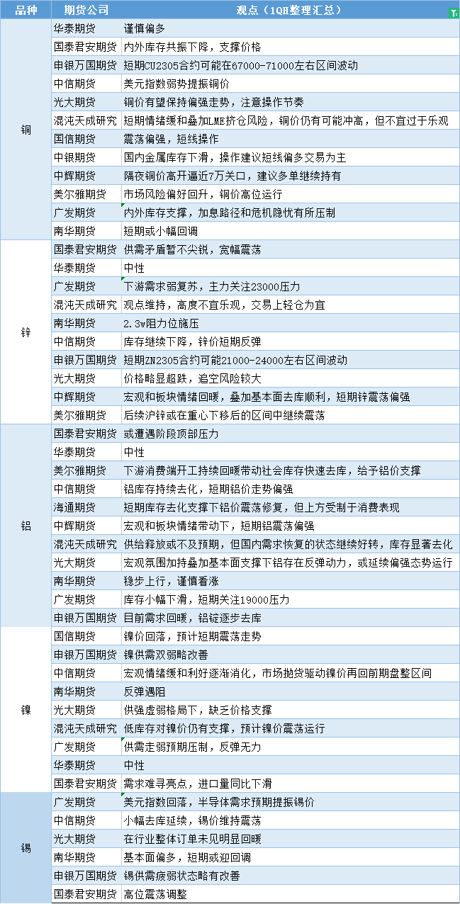 期货公司观点汇总一张图:3月30日有色系(铜、锌、铝、镍、锡等)
