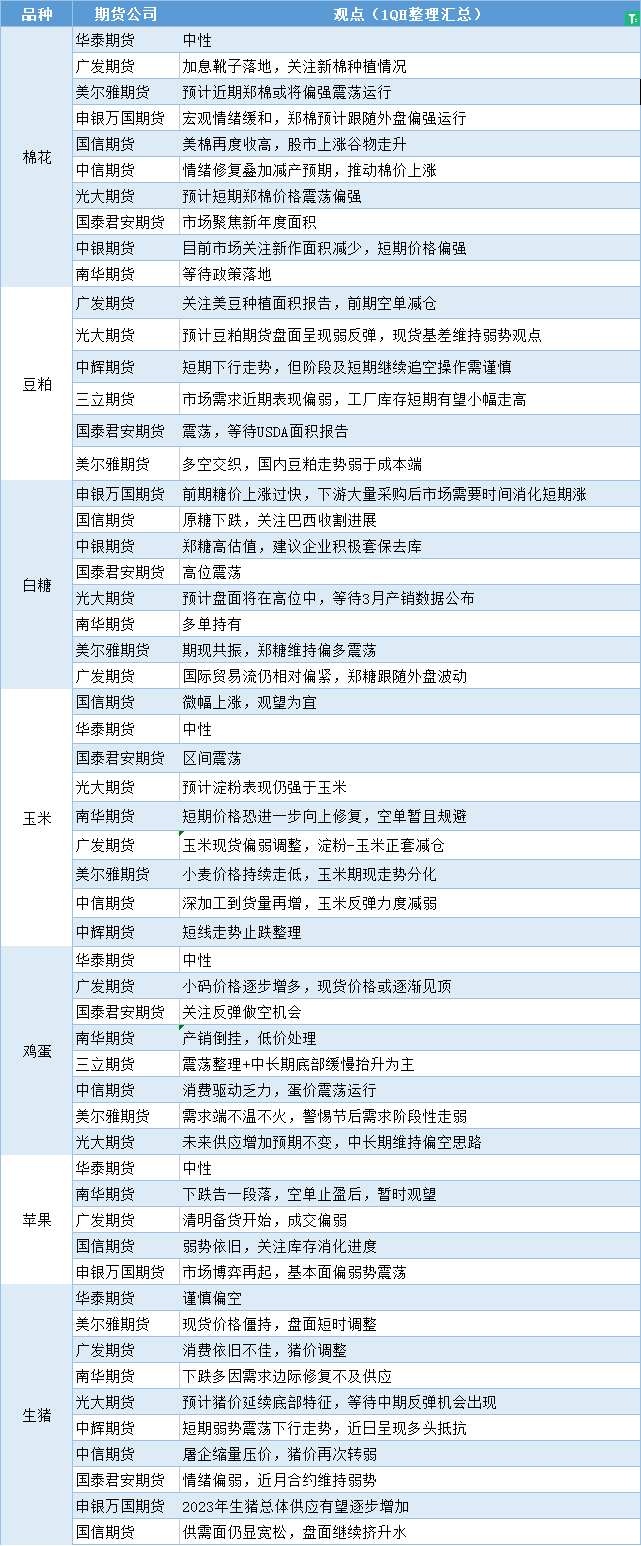 期货公司观点汇总一张图:3月30日农产品(棉花、豆粕、白糖、玉米、鸡蛋、生猪等)