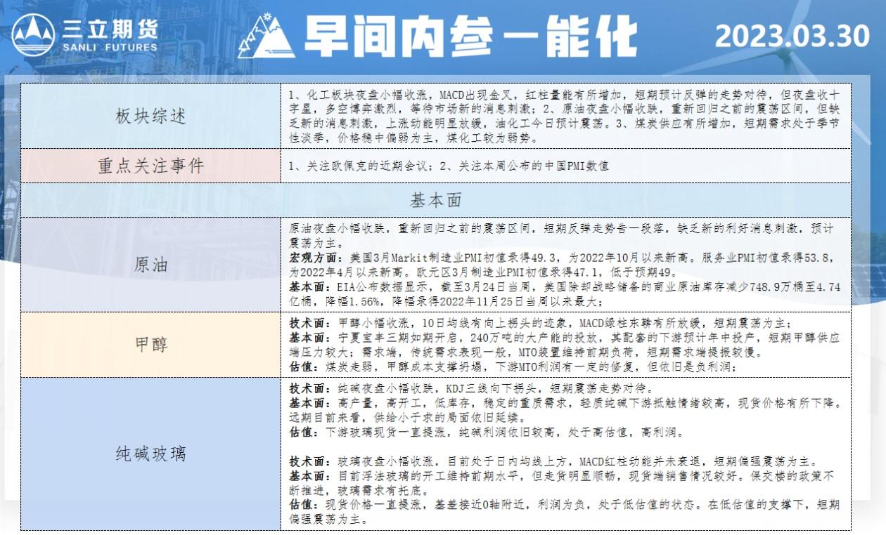 三立期货3月30日早间内参——能化