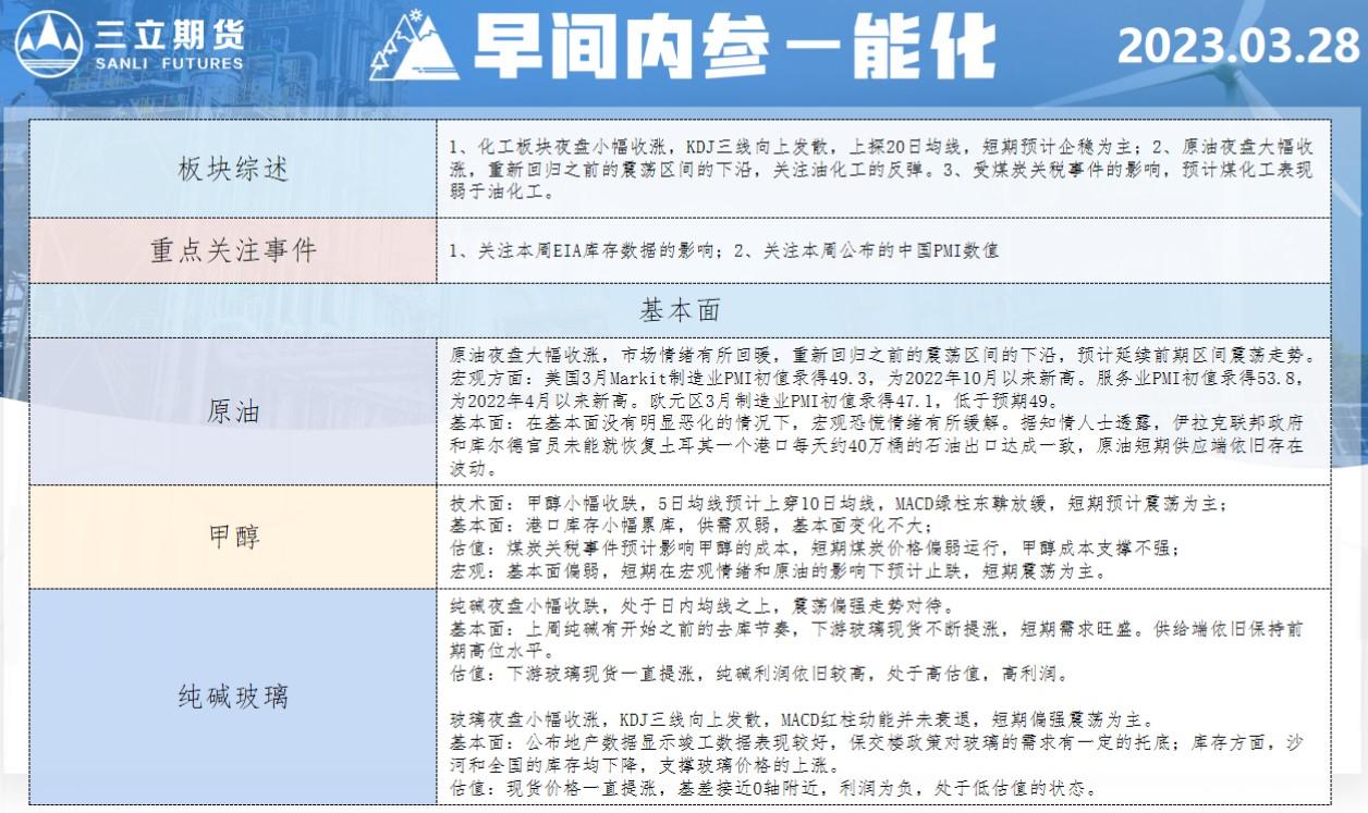 三立期货3月28日早间内参——能化