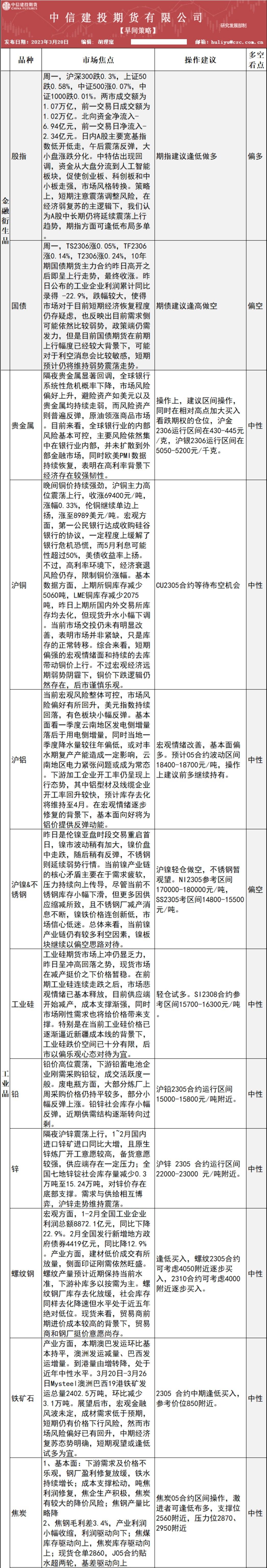 中信建投期货3月28日早间交易策略