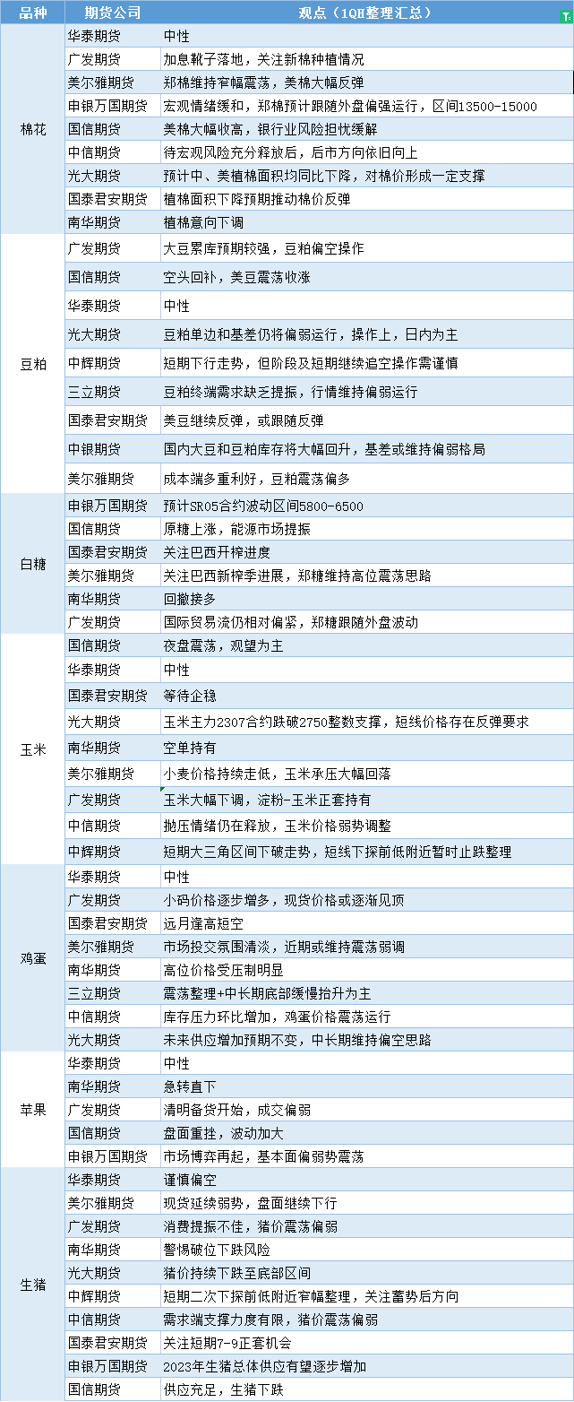 期货公司观点汇总一张图:3月28日农产品(棉花、豆粕、白糖、玉米、鸡蛋、生猪等)
