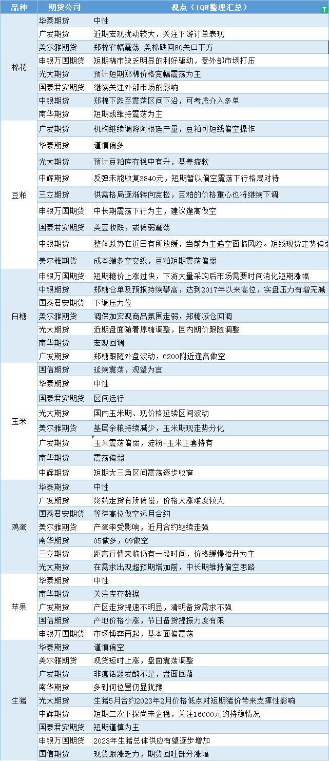 期货公司观点汇总一张图:3月16日农产品(棉花、豆粕、白糖、玉米、鸡蛋、生猪等)