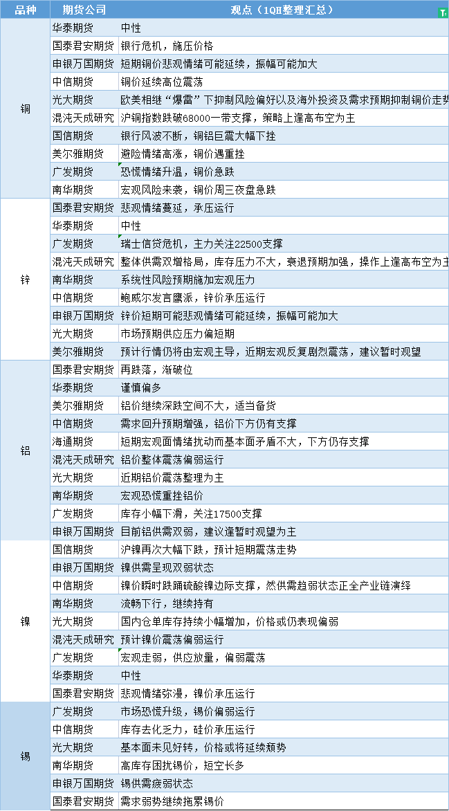 期货公司观点汇总一张图:3月17日有色系(铜、锌、铝、镍、锡等)