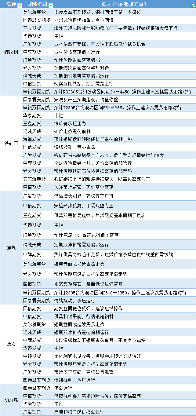 期货公司观点汇总一张图:3月17日黑色系(螺纹钢、焦煤、焦炭、铁矿石、动力煤等)