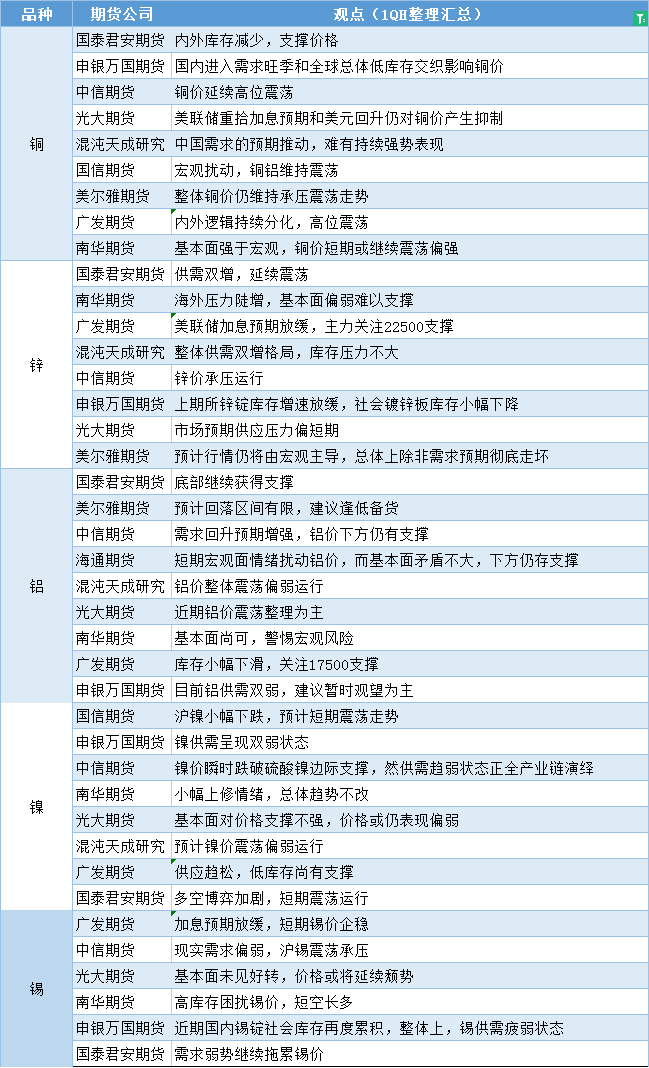 期货公司观点汇总一张图:3月15日有色系(铜、锌、铝、镍、锡等)