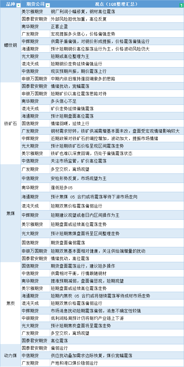 期货公司观点汇总一张图:3月15日黑色系(螺纹钢、焦煤、焦炭、铁矿石、动力煤等)