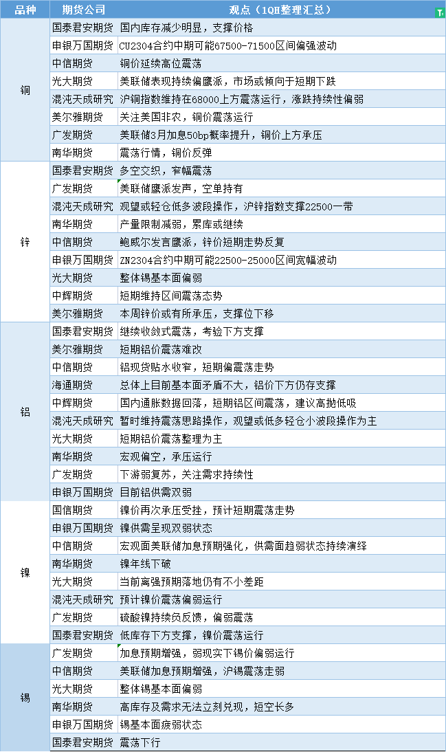 期货公司观点汇总一张图:3月10日有色系(铜、锌、铝、镍、锡等)