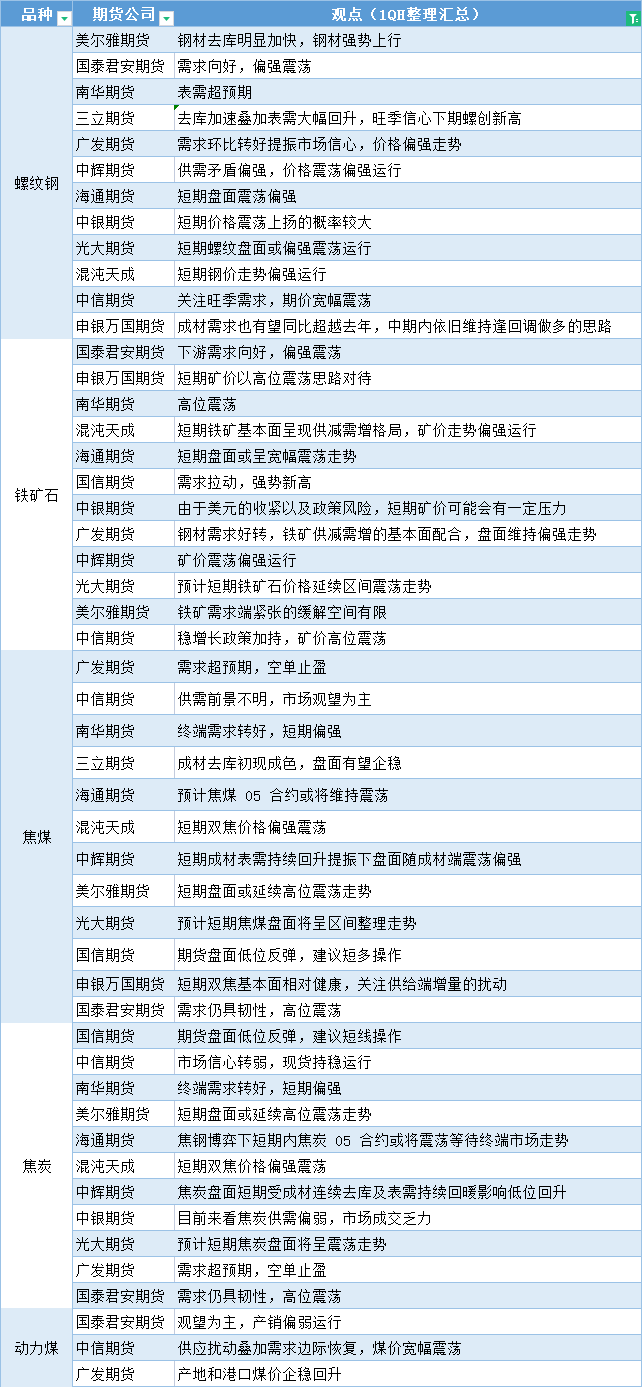 期货公司观点汇总一张图:3月10日黑色系(螺纹钢、焦煤、焦炭、铁矿石、动力煤等)